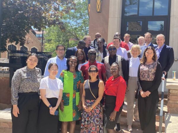 Das Foto zeigt die Kursteilnehmenden sowie einzelne Dozierende, darunter den Kursleiter Prof. Gabor Molnar (hinten, 1. von rechts), Prof. Phil Weiser (Attorney General des Staates Colorado, hinten 2. von rechts) sowie Prof. Uta Wilkens (Mitte, 2. von rechts).